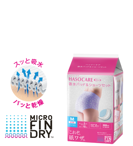 伸縮性に優れた、マイクロフィンドライ構造の薄型新素材(特許出願中)が、ショーツ内部の湿気を吸い出し常にドライに保つのでお肌はいつもサラサラ。